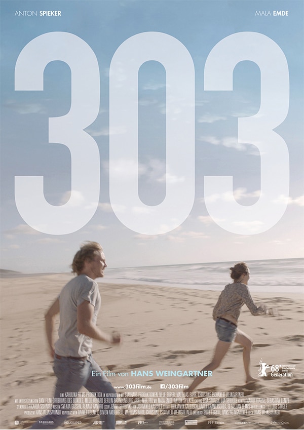 303 erzählt die Geschichte der beiden Studierenden Jule (Mala Emde) und Jan (Anton Spieker), die es aus unterschiedlichen Beweggründen in einem alten Wohnmobil auf einen gemeinsamen Roadtrip von Berlin Richtung Süden zieht. Während sie in leidenschaftlichen Diskussionen über sich und die Welt philosophieren, bleibt Regisseur Hans Weingartner in naturalistischer Manier und vor atemberaubender Landschaftskulisse immer ganz nah an den beiden jungen Menschen.Jan (Anton Spieker) ist davon überzeugt, dass der Mensch von Natur aus egoistisch ist. Deswegen ist er auch nicht weiter überrascht, als ihn in Berlin seine Mitfahrgelegenheit versetzt. Jule (Mala Emde) hingegen glaubt, dass der Mensch im Kern empathisch und kooperativ ist, und bietet Jan einen Platz in ihrem "303“ Oldtimer-Wohnmobil an. Beide sind unterwegs Richtung Atlantik. Jan will nach Spanien, um seinen leiblichen Vater kennenzulernen, Jule zu ihrem Freund nach Portugal. Eigentlich soll es gemeinsam nur bis Köln gehen, doch mit jedem Kilometer eröffnet sich etwas mehr von der Welt des Anderen. Macht der Kapitalismus den Menschen zum Neandertaler? Führt Monogamie ins Unglück und kann man sich aussuchen, in wen man sich verliebt? Die beiden durchqueren Frankreich und erreichen Spanien, ihre fesselnden Gespräche werden immer persönlicher. Und es fällt ihnen immer schwerer, sich nicht ineinander zu verlieben ...