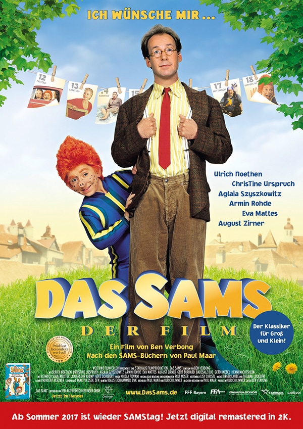 1,8 Millionen Kinozuschauer ließen sich 2001 von dem frechen Knirps im Taucheranzug begeistern. 16 Jahre später hat der liebevolle Kinderfilmklassiker nichts von seiner Faszination eingebüßt. Anlässlich des 80. Geburtstags von Autor Paul Maar kommt DAS SAMS digital remastered in 2K in die Kinos.