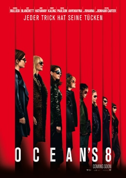 Fünf Jahre, acht Monate und zwölf Tage ist es her, seit Debbie Ocean (Sandra Bullock) mit der Planung ihres größten Coups begonnen hat. Dazu braucht sie das bestmögliche Team – allen voran ihre Komplizin Lou Miller (Cate Blanchett). Gemeinsam rekrutieren die beiden weitere Spezialistinnen: Juwelierin Amita (Kaling), Trickbetrügerin Constance (Awkwafina), Hehler-Expertin Tammy (Paulson), Hackerin Nine Ball (Rihanna) und Modedesignerin Rose (Bonham Carter).