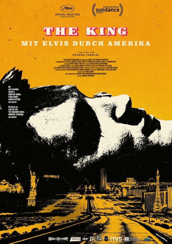 Auf seiner Reise trifft Jarecki an zahllosen Orten auf Mitreisende, manche prominent, andere nicht, die in dem Auto über Elvis und Amerika reden: eine Parallelaufnahme über den Aufstieg des Sängers und Abstieg seines Landes. So wie Elvis sich verführen lässt und an dem Giftcocktail von Geld und Machtgier zugrunde geht, wird auch das Land vom Raubtierkapi-talismus ausgehöhlt, in dem ein Spielkasinobesitzer und Reality-TV-Star mit bislang unerreichter Vulgarität das Präsidentenamt innehat und auftritt wie ein Monarch. Zu den Prominenten gehören Ethan Hawke, Mike Myers, Chuck D, Ashton Kutcher, Dan Rather, James Carville, Emmylou Harris und Alec Baldwin. Dazu kommen musikalische Auftritte von Emi Sunshine and the Rain, John Hiatt, M. Ward, Immortal Technique, Loveful Heights u.v.m.
