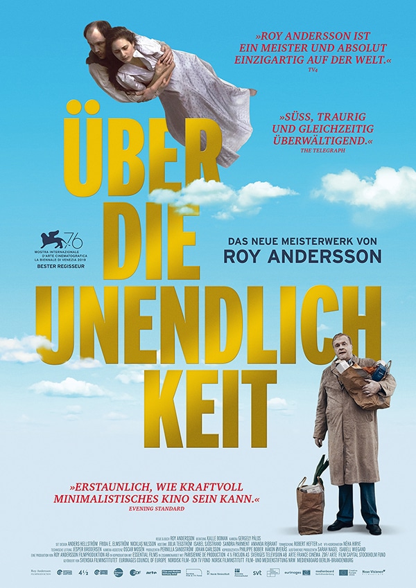 Mit seinem neuen Film ÜBER DIE UNENDLICHKEIT fügt der vielfach ausgezeichnete Regisseur Roy Andersson seinem Werk ein neues Meisterwerk hinzu, ein filmisches Nachdenken über das menschliche Leben in all seiner Schönheit und Grausamkeit, seiner Pracht und seiner Einfachheit.