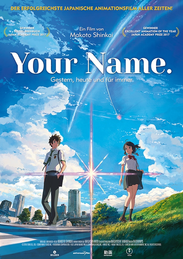 Mit Makoto Shinkais Coming-of-Age-Geschichte YOUR NAME. erobert der erfolgreichste japanische Filmrelease seit „Chihiros Reise ins Zauberland“ 2018 endlich auch die deutschen Kinos. Der Film besticht durch seinen herausragenden Animationsstil und eine Geschichte voller Poesie und Romantik, die die Grenzen von Raum und Zeit hinter sich lässt. Nach dem Überraschungserfolg in Japan und China brach YOUR NAME. auch in den USA alle Rekorde und ist inzwischen der erfolgreichste Anime aller Zeiten. Das japanische Kunstwerk konnte weltweit zahlreiche Auszeichnungen gewinnen (u.a. „Bestes Drehbuch” und „Excellent Animation of the Year” beim 40th Japan Academy Prize). Auch Hollywood hat bereits angeklopft: Kein Geringerer als J.J. Abrams („Star Wars: Das Erwachen der Macht“) kündigte im September 2017 an, die Body-Switch-Geschichte zu adaptieren und ein Live-Action-Remake des Anime produzieren zu wollen.