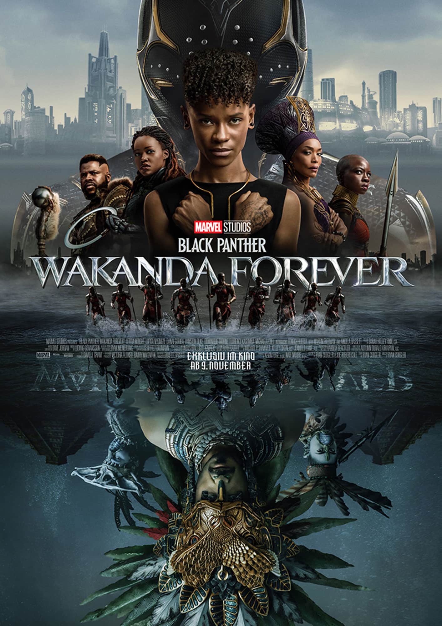 In Marvel Studios' BLACK PANTHER: WAKANDA FOREVER kämpfen Königin Ramonda (Angela Bassett), Shuri (Letitia Wright), M'Baku (Winston Duke), Okoye (Danai Gurira) und die Dora Milaje (u.a. Florence Kasumba) nach dem Tod von König T'Challa darum, ihre Nation vor intervenierenden Weltmächten zu schützen. Die Wakandaner nehmen ihr nächstes Kapitel in Angriff und die Helden müssen sich zusammenschließen, um mit Hilfe von Elitekriegerin Nakia (Lupita Nyong'o) und Everett Ross (Martin Freeman) einen neuen Weg für das Königreich Wakanda zu beschreiten. Neben Tenoch Huerta als Namor, dem König einer verborgenen Unterwassernation, sind außerdem Dominique Thorne, Michaela Coel, Mabel Cadena und Alex Livanalli zu sehen.