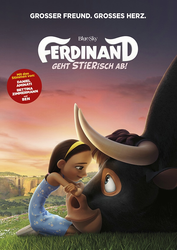 Von Blue Sky Studios und Carlos Saldanha, der Regisseur von RIO, und inspiriert vom beliebten Buch „Ferdinand der Stier“ von Munro Leaf und Robert Lawson, ist FERDINAND eine herzerwärmende, animierte Abenteuerkomödie mit einem Cast voller Stars wie John Cena, Kate McKinnon, Gina Rodriguez, Anthony Anderson und viele weitere.