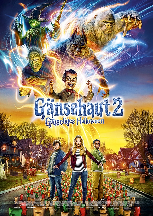 Die Gänsehaut-Fortsetzung Gänsehaut 2: Gruseliges Halloween lässt erneut mit Monstern, Geistern und anderen Horrorgestalten Chaos in die Welt los - und zwar diesmal in der unheimlichsten Nacht des Jahres: Halloween.In der Kleinstadt Wardenclyffe finden die zwei Freunde Sonny (Jeremy Ray Taylor) und Sam (Caleel Harris) in einem verlassenen Haus ein Manuscript. Die unveröffentlichte Geschichte trägt den Titel "Gruseliges Halloween" und wurde von R.L. Stine verfasst. Als sie das Buch öffnen, lassen die Jungs jedoch versehentlich den gefährlichen Slappy (Avery Lee Jones) frei, der mit der Hilfe anderer Monster plant, die Halloween-Apokalypse über die Welt hereinbrechen zu lassen. Sam und Sonny müssen nun zusammen mit Sonnys Schwester Sarah (Madison Iseman) versuchen, diesen teuflischen Plan zu stoppen.