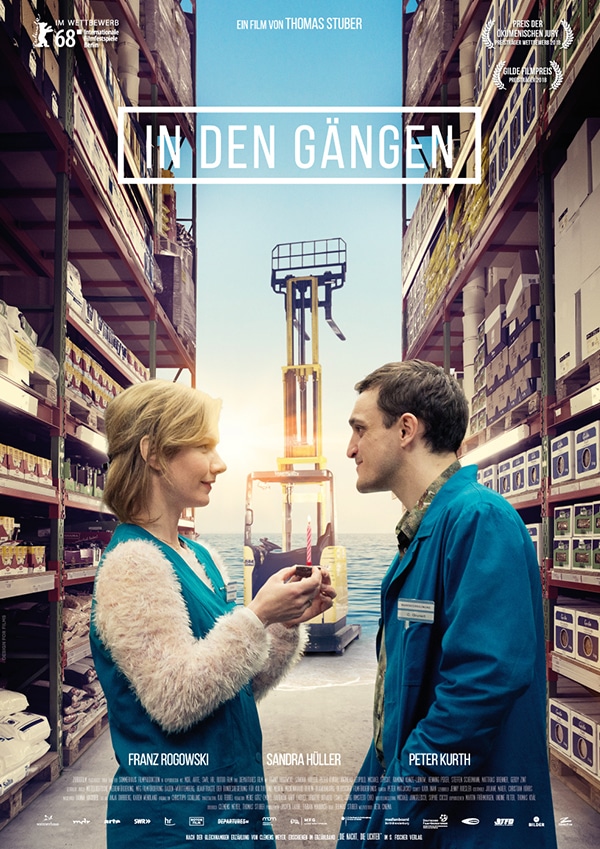"In den Gängen" erzählt von einer zarten Liebe, die in dem geschützten Kosmos eines Großmarkts, inmitten einer Atmosphäre von familiärer Freundschaft und Zugehörigkeit, gedeiht und außerhalb des Marktes keine Chance hätte.