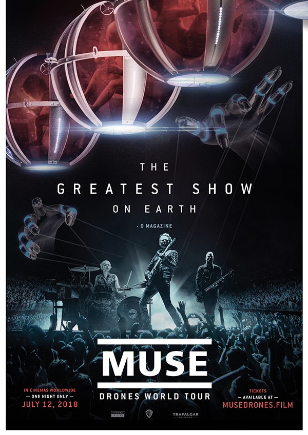 Die britische Band Muse gilt als eine der spektakulärsten Live-Bands der Welt. Wir zeigen die Höhepunkte ihrer gefeierten "Drones World Tour" auf der Kinoleinwand. Aufgezeichnet während mehrerer Konzerte 2016, zeigt der Film die überwältigende 360°-Performance, die Muse auf einer runden Bühne von der Mitte der Arenen aus spielte.Neben einer neuen, Live-Maßstäbe setzenden Show, zeigt der Film exklusive Einblicke hinter die Kulissen, wenn Matt Bellamy, Dominic Howard und Christopher Wolstenholme über das kreative Konzept hinter der Drones World Tour sprechen.