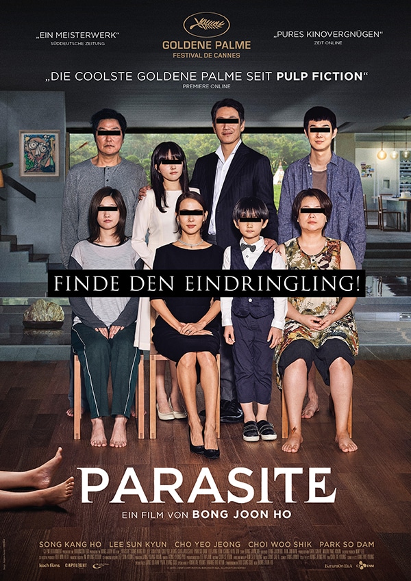Familie Kim ist ganz unten angekommen: Vater, Mutter, Sohn und Tochter hausen in einem grünlich-schummrigen Keller, kriechen für kostenloses W-LAN in jeden Winkel und sind sich für keinen Aushilfsjob zu schade. Erst als der Jüngste eine Anstellung als Nachhilfelehrer in der todschicken Villa der Familie Park antritt, steigen die Kims ein ins Karussell der Klassenkämpfe. Mit findigen Tricksereien, bemerkenswertem Talent und großem Mannschaftsgeist gelingt es ihnen, die bisherigen Bediensteten der Familie Park nach und nach loszuwerden. Bald schon sind die Kims unverzichtbar für ihre neuen Herrschaften. Doch dann löst ein unerwarteter Zwischenfall eine Kette von Ereignissen aus, die so unvorhersehbar wie unfassbar sind.