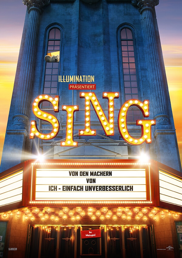 Die kunterbunte Welt von Sing wird ausschließlich von liebenswerten Tiercharakteren bevölkert, wie dem vornehmen Koala Buster Moon, dessen früher so schillerndes Theater kurz vor dem Ruin steht. Doch Buster ist ein ewiger Optimist, besser gesagt: ein echtes Schlitzohr, der einfach alles tun würde, um sein Lebenswerk zu retten. Deshalb nutzt er seine letzte Chance und veranstaltet die tierischste Casting-Show, die die Welt je gesehen hat.