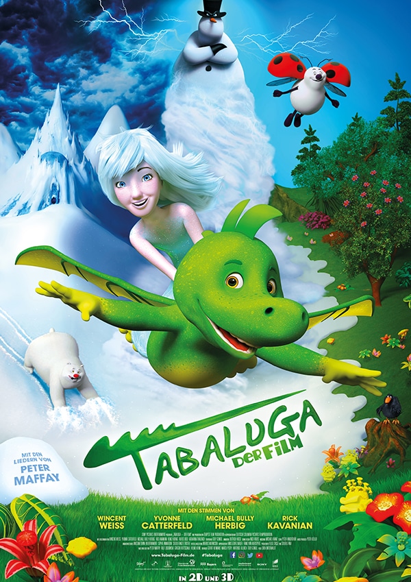 TABALUGA – DER FILM erweckt Peter Maffays Ausnahmeerfolg als farbenprächtiges 3D-Animationsabenteuer zu neuem Leben und bringt den kleinen grünen Drachen nun endlich auch im Kino groß heraus. Regie führte Sven Unterwaldt, der bereits mit „7 Zwerge“ und „Hilfe, ich hab meine Lehrerin geschrumpft“ bewiesen hat, dass er beste Familienunterhaltung inszenieren kann. Wincent Weiss, Yvonne Catterfeld, Michael Bully Herbig und Rick Kavanian leihen den beliebten Hauptfiguren ihre Stimmen. In weiteren Rollen sind Heinz Hoenig, Rufus Beck und Katharina Thalbach zu hören. Und auch Peter Maffay selbst ist natürlich mit vielen Songs mit dabei.